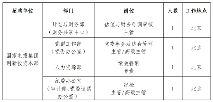国家电投集团创新投资招聘公告